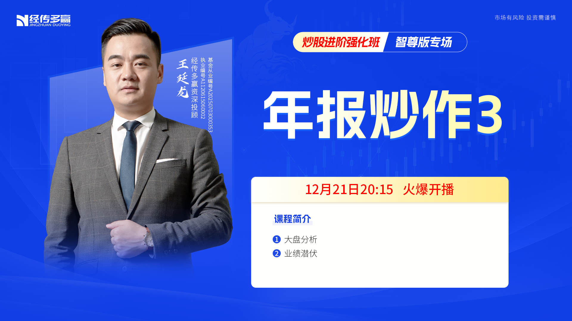 经传多赢短线王 职业编号:A1120616080001, 本圈子是由投研总监杨春虎,携多位人气投顾打造的短线王专属学习交流圈。 【1】提供直播教学指导:短线王指标精讲、短线王战法精讲、实战案例讲解 【2】三对一全方位服务:由投顾、讲师、服务老师一体化的专业团队提供全程服务跟踪 杨春虎,执业编号:A1120619100003 罗雪奎,执业编号:A1120616080001 吴中明,执业编号:A1120613090002 孙硌,执业编号:A1120616090005