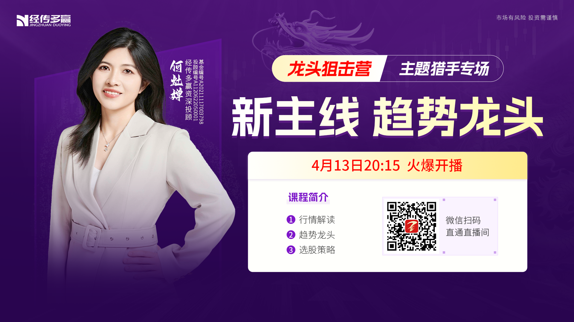 经传多赢短线王 职业编号:A1120616080001, 本圈子是由投研总监杨春虎,携多位人气投顾打造的短线王专属学习交流圈。 【1】提供直播教学指导:短线王指标精讲、短线王战法精讲、实战案例讲解 【2】三对一全方位服务:由投顾、讲师、服务老师一体化的专业团队提供全程服务跟踪 杨春虎,执业编号:A1120619100003 罗雪奎,执业编号:A1120616080001 吴中明,执业编号:A1120613090002 孙硌,执业编号:A1120616090005
