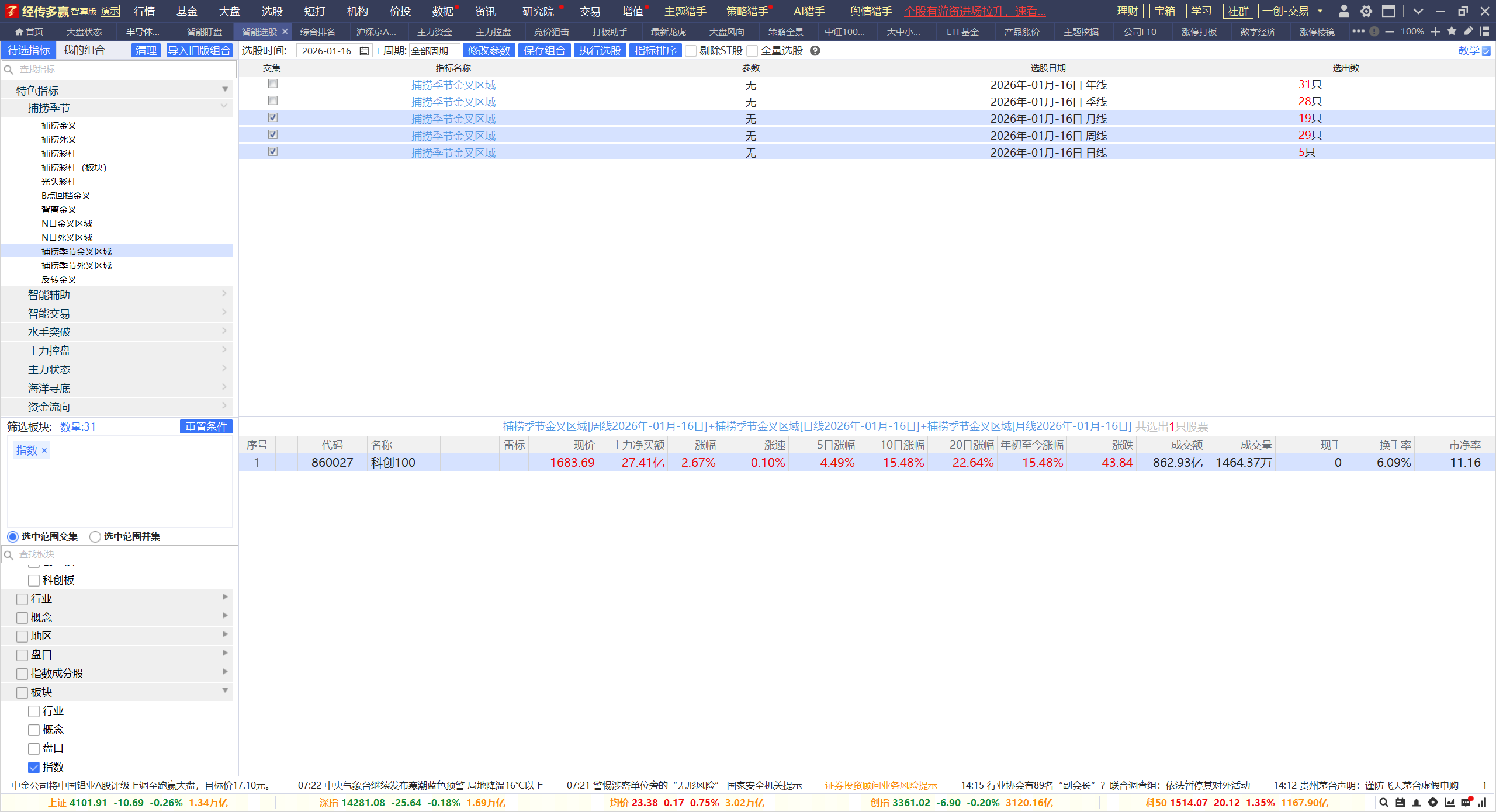 1,趋势角度,月线金叉19只,周线金叉29只,所以指数的中期,中短期趋势依然没有问题。日线金叉区域单独有5只,分别是创成长,创大盘,创50和深100,科创100。月周日金叉区域交集之后,市场只有科创100指数符合,说明率先完成中期,中短期,短期趋势走好的,就是科创100。