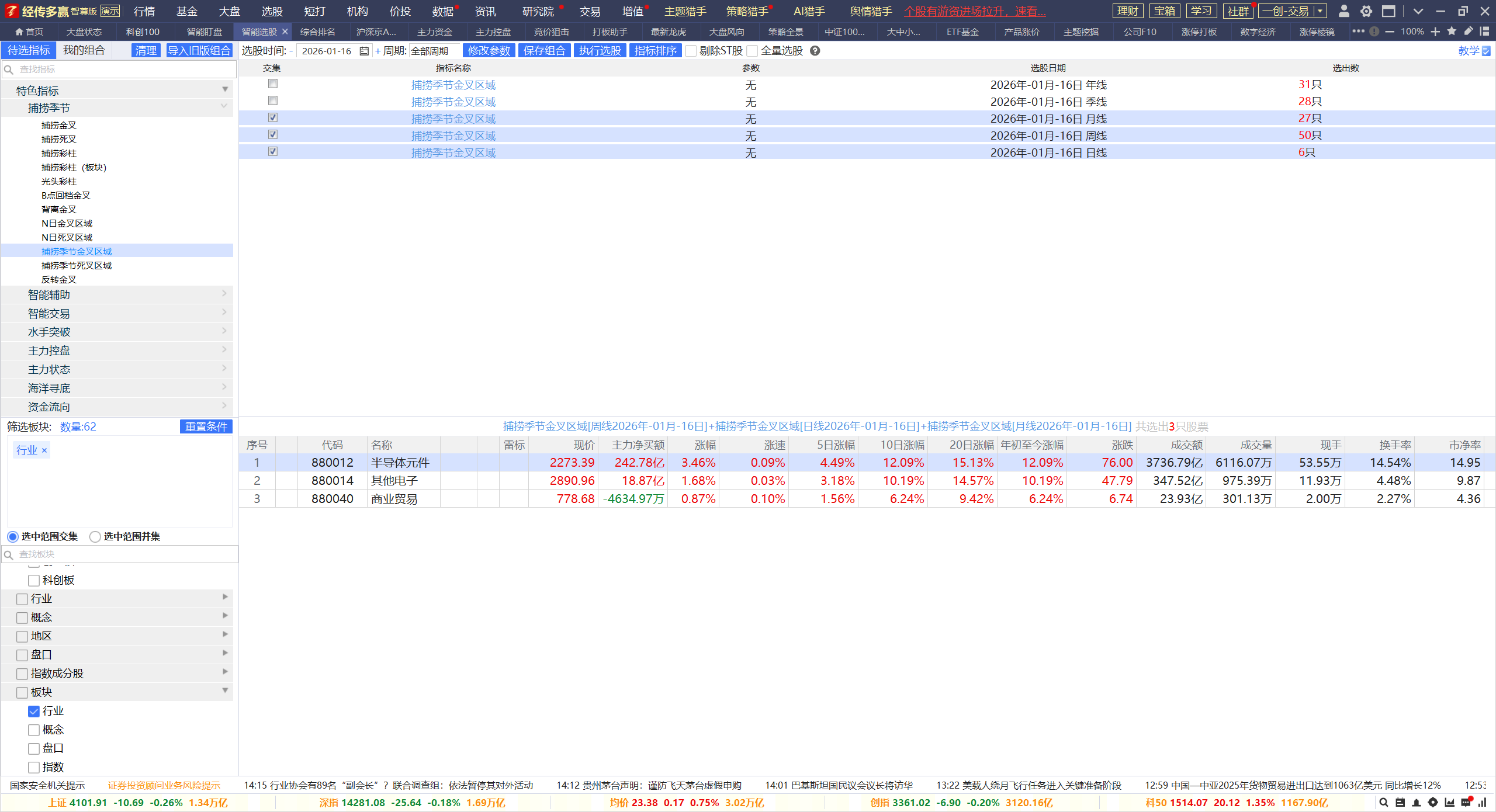 2,目前月周日金叉区域,是半导体,其他电子,商业贸易,但周线和日线金叉区域还有电子制造,非金属品,和化工制品。于是分类也很清楚,一类是硬科技,一类是涨价,对应的角度,都有相对的ETF ,如半导体设备ETF ,如稀有金属ETF,如化工ETF等。
