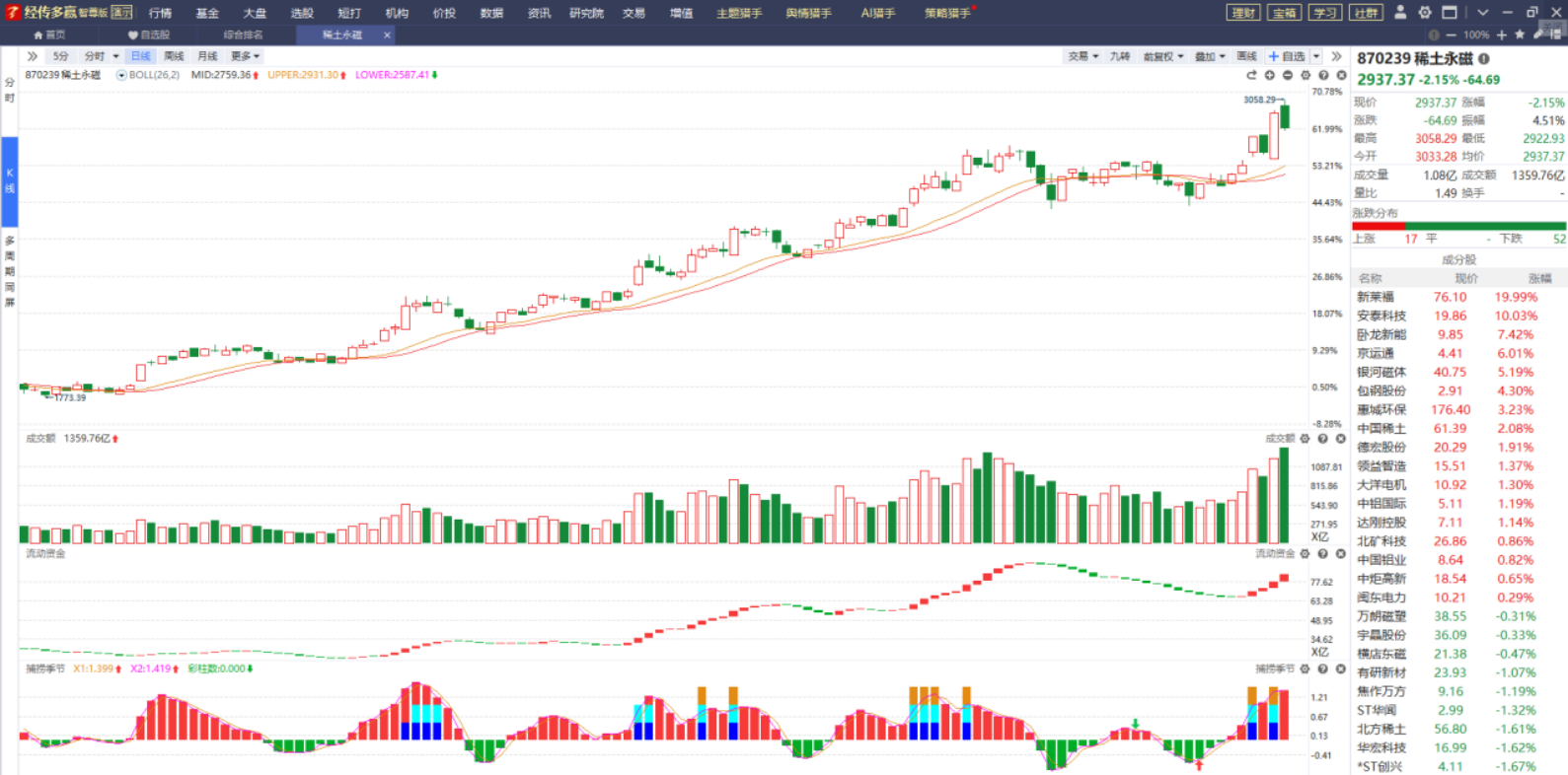 稀土永磁的趋势非常不错,成交量呈持续放量状态,流动资金翻红,捕捞季节继续收出金叉状态,虽然昨天有小幅度的调整但这并不影响它的战略配置机遇,尤其是在中美贸易战还没彻底落下帷幕之前,稀土都有可能迎来不错的炒作行情。