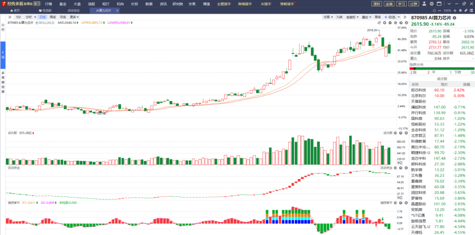 科技方向经过昨天的大幅杀跌,已经逐渐具备再次介入的可能,至于说要不要介入还要看市场赏不赏脸,如果市场能止跌企稳,那么科技方向肯定会组织一波进攻,因为权重金融股跟周期股已经在前面顶了好几天了,又到了调整的时候,如果市场真的要切换风格,那么科技反弹,权重调整是一个不错的选择。