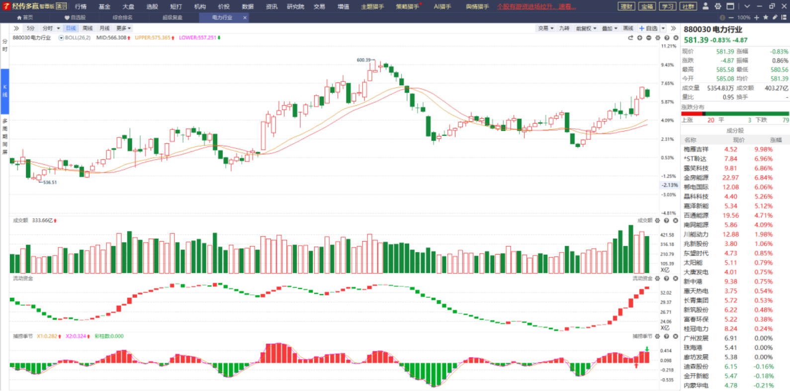 电力板块在前两天收出回档金叉的走势,目前而言趋势保持得还不错,成交量呈放量状态,流动资金持续翻红,但捕捞季节收出了死叉,持有相关个股的继续拿着就行了。