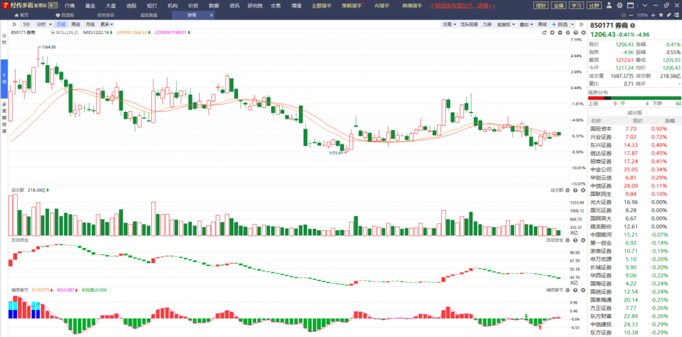 近期市场的轮动效应很强,包括权重、题材、蓝筹等等都轮番炒作了一波,唯独券商板块没有太亮眼的表现,如果年后真是因为资金重新回笼市场而引起指数上涨,那么券商必然会有炒作,只要它不跌破辅助线的支撑都是可以逢低布局,然后静待上涨行情的到来。