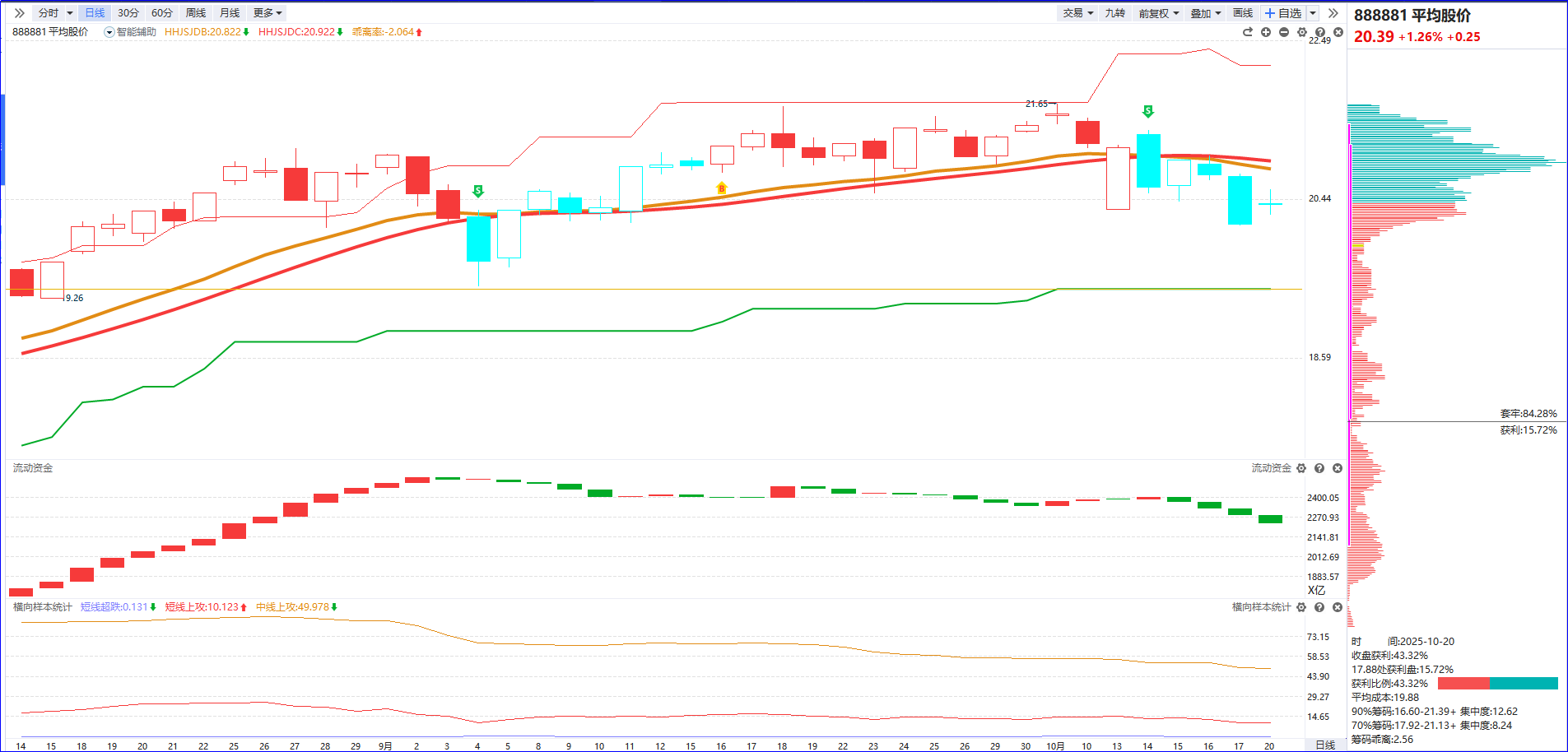 从平均股价对应的流动资金指标持续翻绿,反映市场整体资金活跃度不足;横向样本统计数据中,短线上攻与中线上攻趋势均以向下为主,进一步印证当前市场做多动能偏弱、趋势性机会匮乏的现状。
