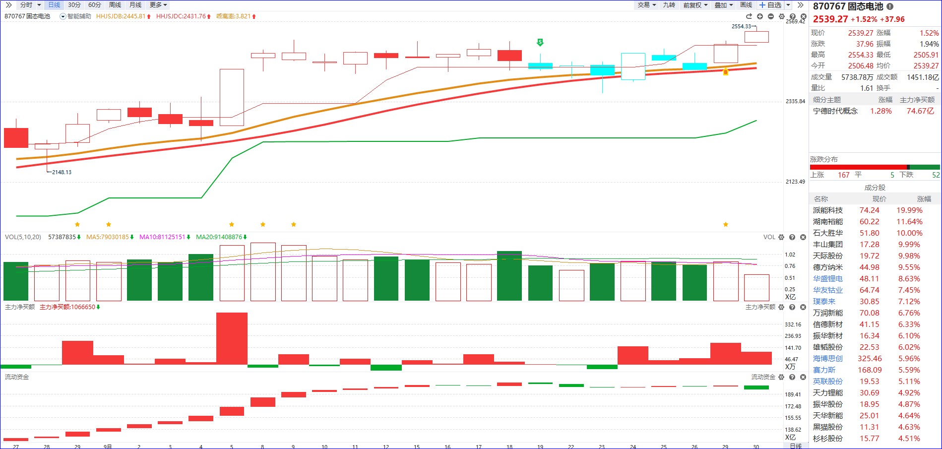 消息面上,八部门印发《有色金属行业稳增长工作方案》,提出加快全固态电池材料等高端产品应用验证。工信部同期发布《电子信息制造业2025—2026年稳增长行动方案》,支持全固态电池等前沿技术方向基础研究。