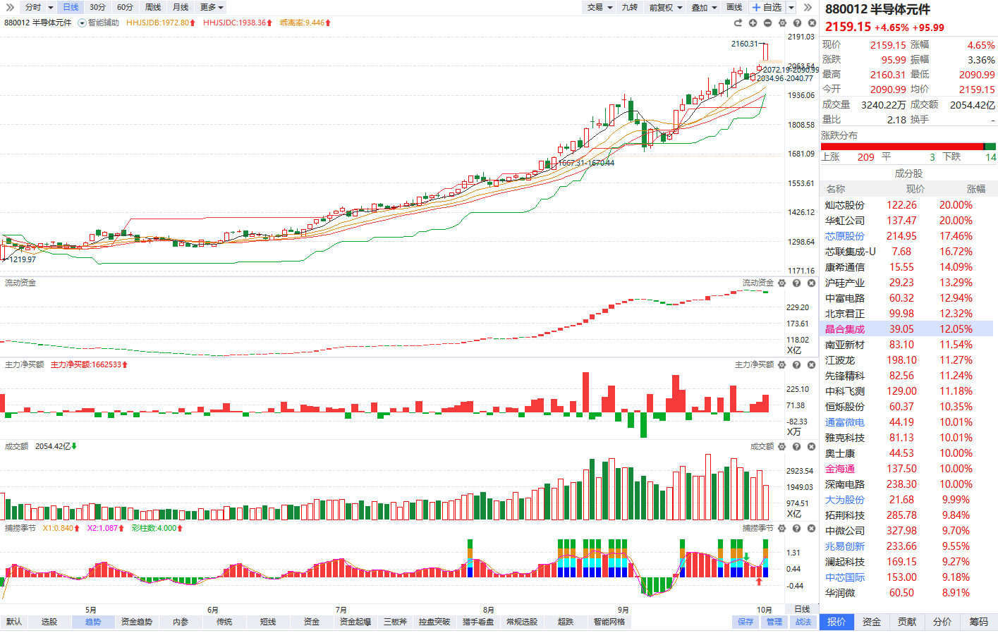 根据软件信号,板块近期流动资金开始翻绿,主力净买额红肥绿瘦,虽然主力资金仍然维持流入,但成交活跃度已经开始下降,增量资金放缓进场,连续大涨后容易出现内部分化,注意回避高潮节点追涨,去弱留强等待缩量回踩的回档布局时机。