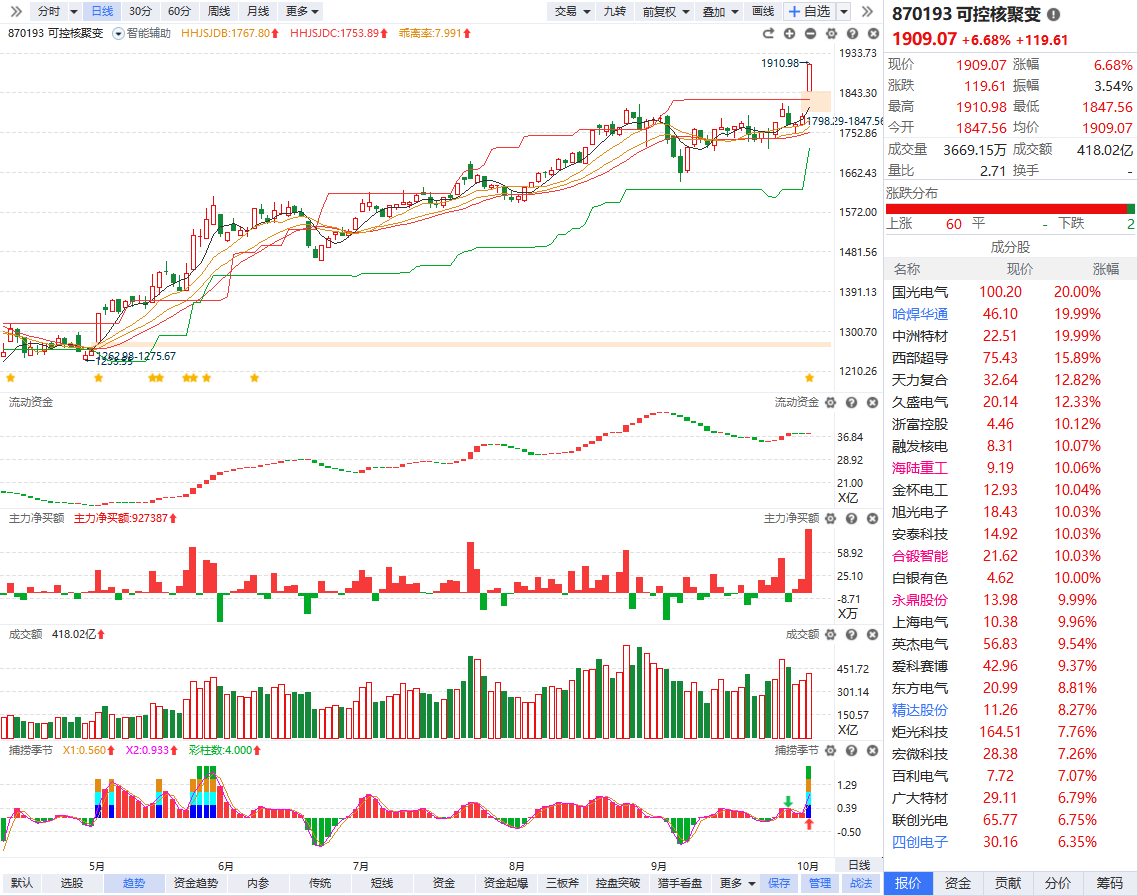 可控核聚变概念涨势扩大 十余只成分股涨停