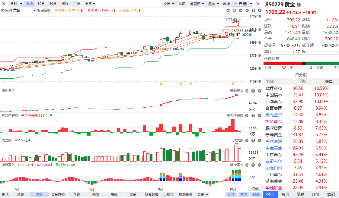 午后黄金概念震荡拉升,晓程科技涨近10%,此前豫光金铅一度逼近涨停,股价创历史新高,西部黄金、鹏欣资源、西部黄金、晓程科技、白银有色、中金黄金等跟涨。