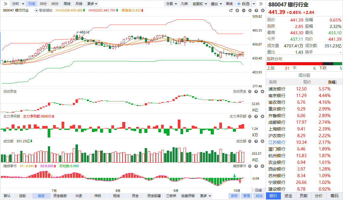 根据软件信号,板块近期流动资金持续翻红,主力净买额红肥绿瘦,捕捞季节走出底背离金叉反弹,同时周线形成捕捞季节金叉,中线趋势有望迎来拐点,如果能够放量站上辅助线,可以积极关注首次缩量回档的博弈机会。