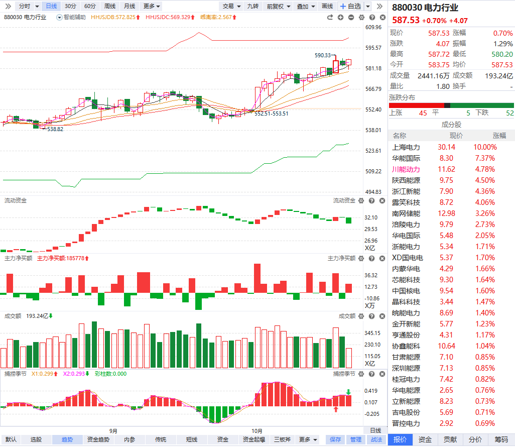 电力板块探底回升 上海电力15天5板