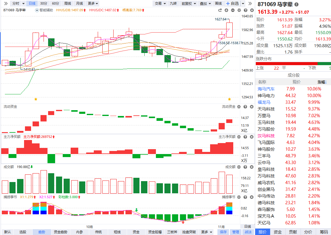 午后“马字辈”股持续逆势活跃,天马科技涨停,此前神马电力、海马汽车、福龙马涨停,万里马一度涨超10%,汉马科技、万马股份、玉马科技等跟涨。