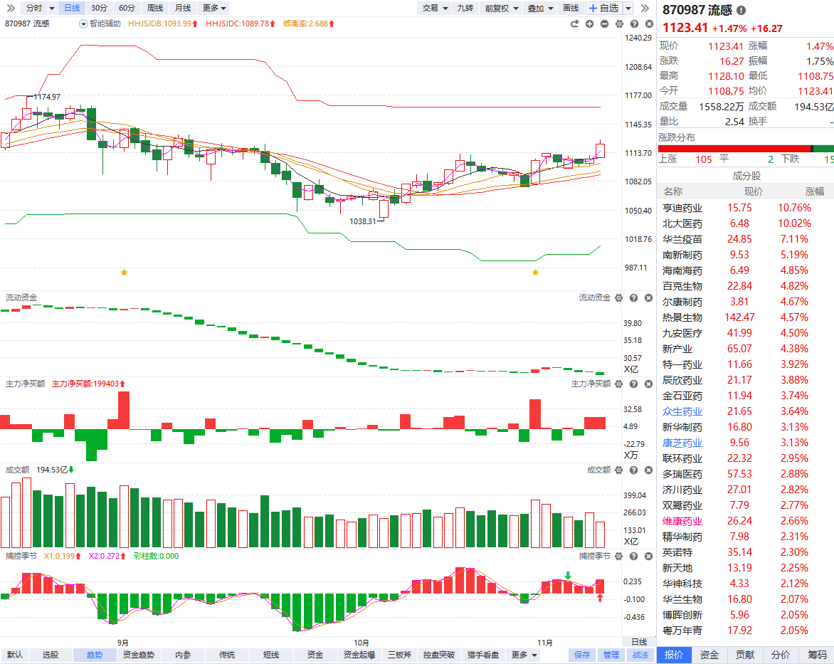 消息面上,11月6日晚间,中国疾病预防控制中心发布的最新一期流感监测周报显示,本周南方省份流感活动上升,北方大部分省份上升。