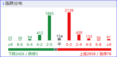 全市场超2800只个股上涨。从板块来看,福建板块持续拉升,平潭发展、中国武夷等10余股涨停。海南板块快速走强,海马汽车11天7板。流感概念股延续强势,金迪克5天3板,众生药业走出3天2板。锂电板块反复活跃,孚日股份7连板,石大胜华3连板。银行板块逆势上扬,工行、农行再创历史新高。下跌方面,存储芯片概念股集体下挫,佰维存储跌超10%。