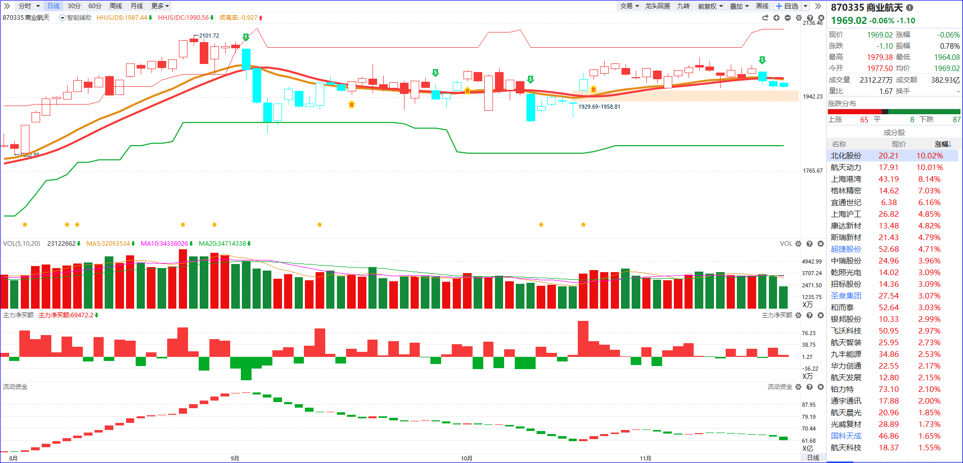 依据软件信号分析,商业航天概念近期流动资金持续处于翻绿状态,反映短期市场交易活跃度相对不足;不过从主力资金行为看,主力净买额呈现红肥绿瘦格局,说明板块仍有主力资金在底部承接。当前板块虽在消息面催化下走出局部活跃行情,但短期尚未形成明确趋势。若想开启上升通道,后续需满足两大关键条件:一是板块成交量需有效放大并成功站上辅助线,完成技术面的趋势确认;二是流动资金需快速由绿翻红,带动市场交易情绪回暖,两者形成共振才能夯实上升基础。