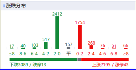 市场早盘高开低走,创业板指跌0.52%,此前一度涨超1.5%。沪深两市半日成交额1.11万亿,较上个交易日放量23亿。全市场超3000只个股下跌。截至收盘,沪指涨0.38%,深成指跌0.05%,创业板指跌0.52%。