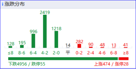 盘面上个股普跌,全市场近5000只个股下跌。从板块来看,军工板块局部回暖,久之洋20cm涨停。农业板块表现活跃,荃银高科20cm涨停。AI应用概念局部走强,榕基软件5连板。水产概念延续强势,中水渔业6连板。下跌方面,锂矿概念集体调整,盛新锂能等多股跌停。存储芯片概念持续走弱,德明利、时空科技跌停。