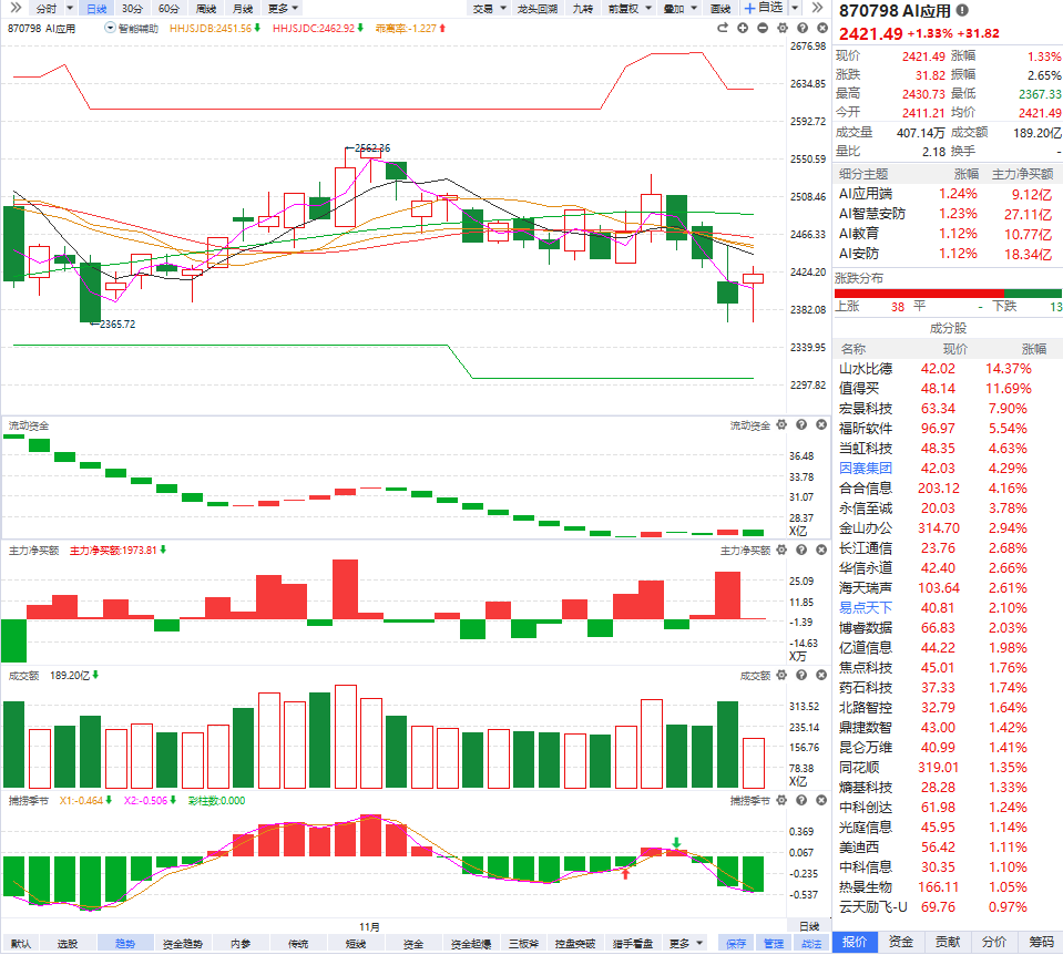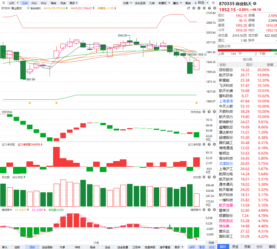 根据软件信号,板块近期流动资金开始,主力净买额红肥绿瘦,周五急跌后今日中阳线反包,K线形态强势,如果资金能持续翻红且放量站上辅助线,有望延续金叉反弹趋势。