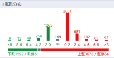 盘面上热点快速轮动,全市场超3600只个股上涨。从板块来看,消费电子方向集体大涨,中兴通讯、天音控股、道明光学等10余股涨停。有色金属板块表现活跃,白银有色、闽发铝业涨停。商业航天概念延续强势,航天发展12天8板。下跌方面,风电板块走势较弱,三一重能跌超6%。