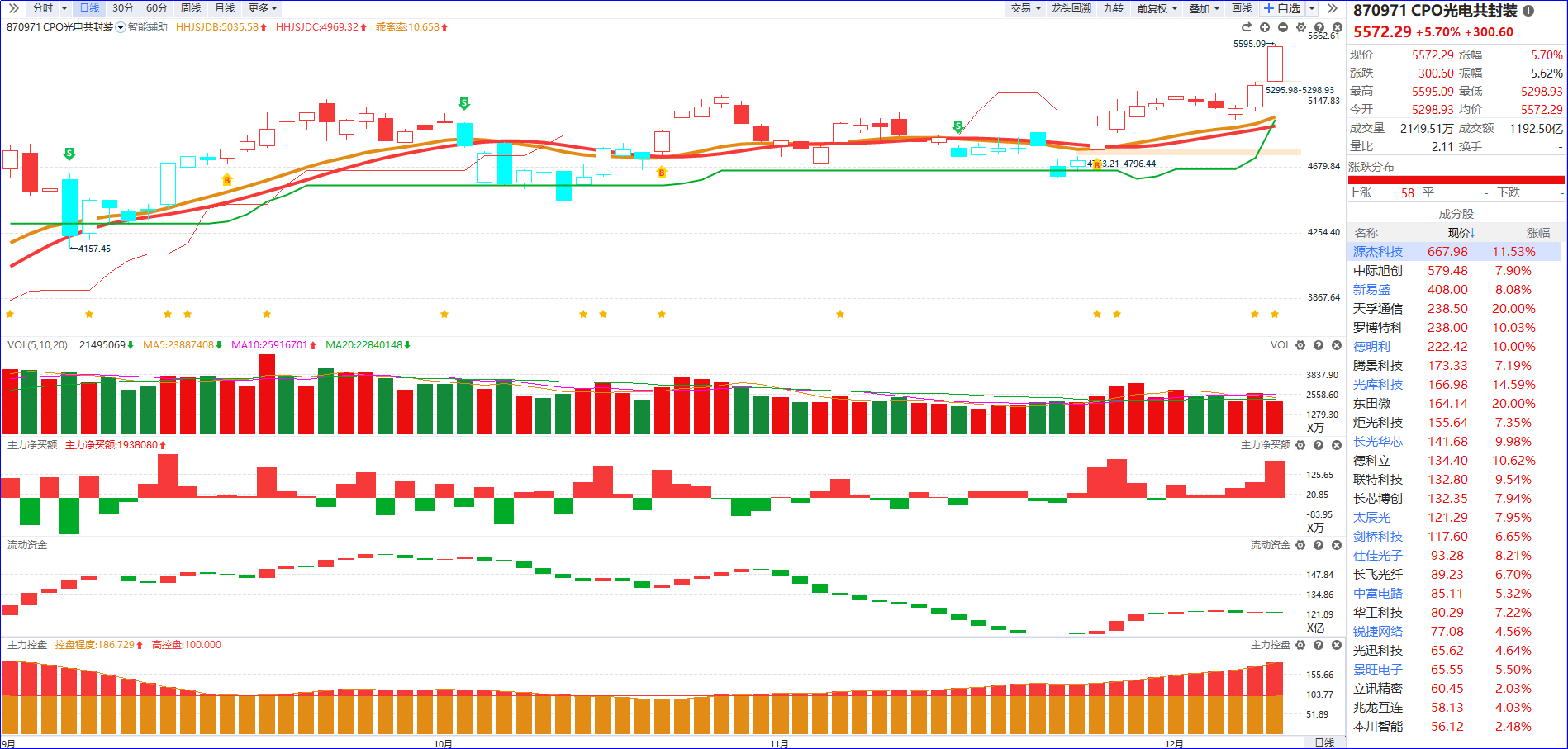 从软件信号看,近期CPO概念流动资金尚未持续翻红,主力净买额红肥绿瘦,需要注意的是板块主力控盘持续攀升,板块K线突破最近几个月的横盘平台,核心产业龙头中际旭创等不断的历史新高,后续重点聚焦两类标的:一是5日主力资金排序靠前的个股,二是叠加主力控盘度稳步递增的标的,可耐心等待板块缩量回档时机,把握回调后的高性价比布局节点。
