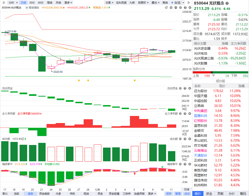 光伏概念震荡走强 迈为股份涨超10%