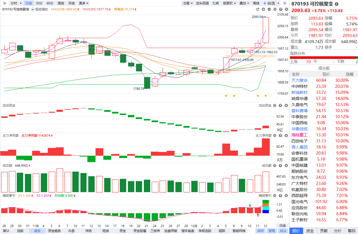 可控核聚变概念持续拉升 中洲特材20CM涨停