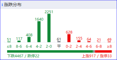 全市场超4400只个股下跌。从板块来看,零售概念反复活跃,百大集团4连板,红旗连锁、广百股份双双2连板。智能驾驶概念逆势拉升,浙江世宝、索菱股份等十余股涨停。数字货币概念走强,翠微股份、航天信息涨停。下跌方面,影视院线概念集体大跌,博纳影业2连跌停。海南板块下挫,海南瑞泽跌超9%。