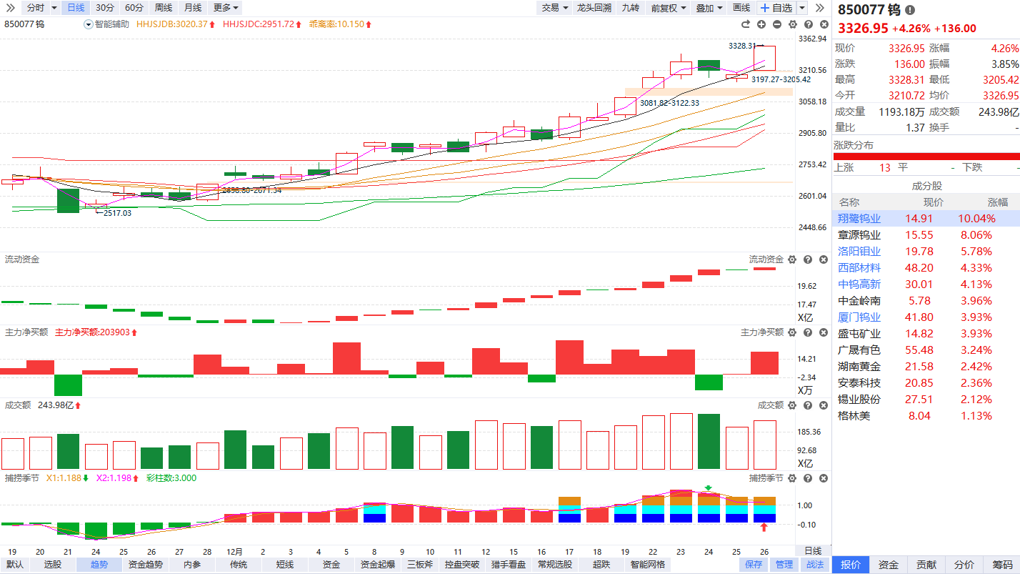 钨矿股午后异动拉升 翔鹭钨业涨停