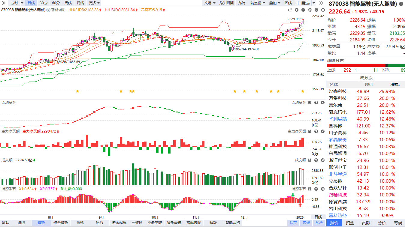 智能驾驶概念持续拉升 万集科技20cm涨停