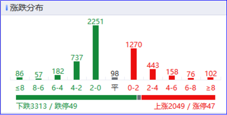 市场早盘高开回落,三大指数集体翻绿。沪深两市半日成交额1.99万亿,较上个交易日放量1171亿。盘面上热点快速轮动,全市场超3300只个股下跌。截至收盘,沪指跌0.22%,深成指跌0.1%,创业板指跌0.01%。