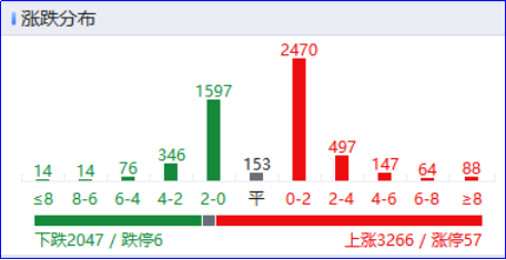 盘面上热点快速轮动,全市场超3200只个股上涨。从板块来看,商业航天概念持续回暖,十余只成分股涨停,巨力索具2连板,中超控股、西部材料涨停。油气概念延续强势,洲际油气触及涨停。煤炭板块快速拉升,大有能源直线涨停。机器人概念反复走强,福莱新材、毅昌科技涨停。下跌方面,贵金属概念冲高回落,西部黄金、晓程科技均跌超5%。