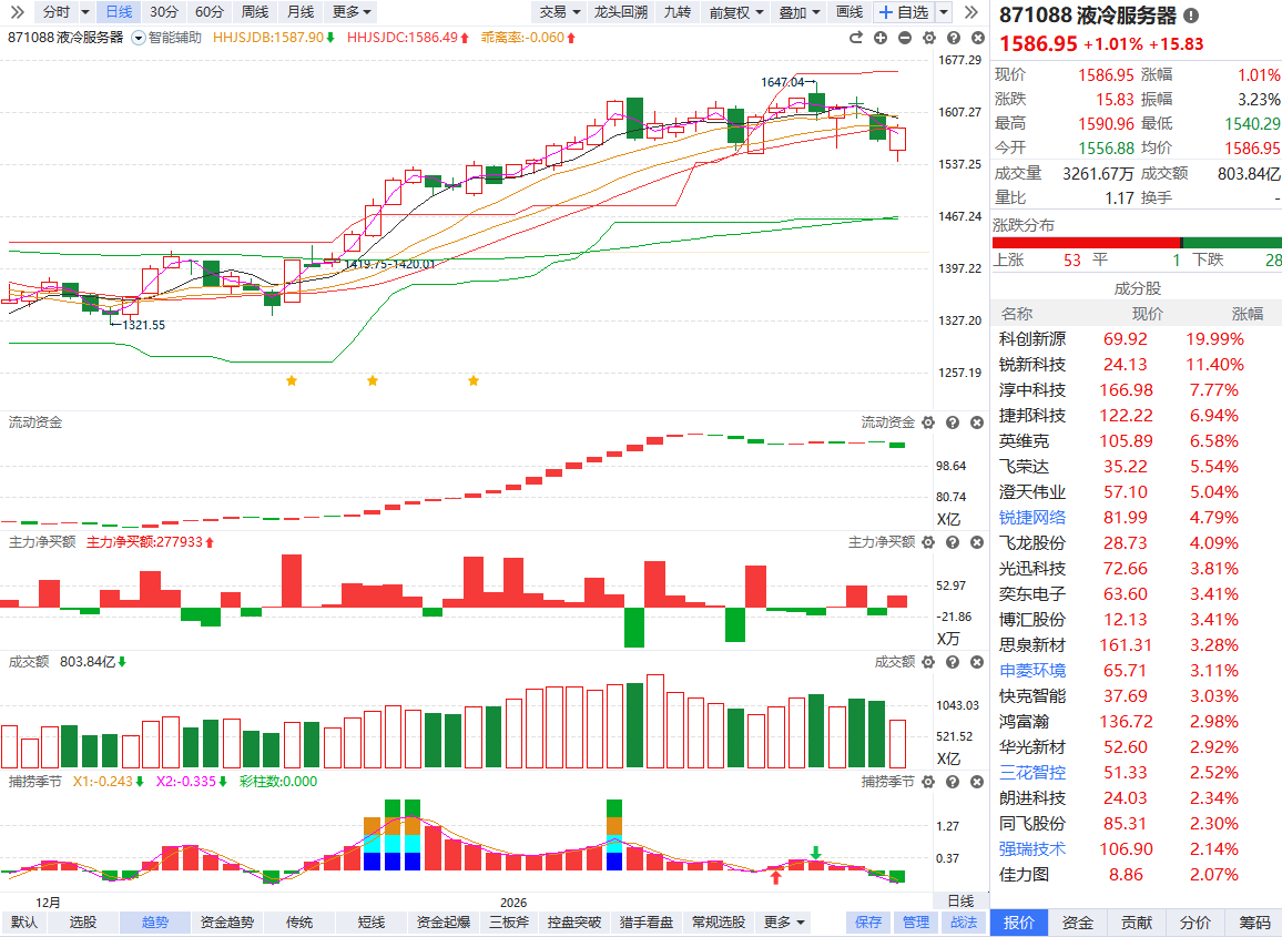 液冷服务器概念震荡走强 科创新源20cm涨停