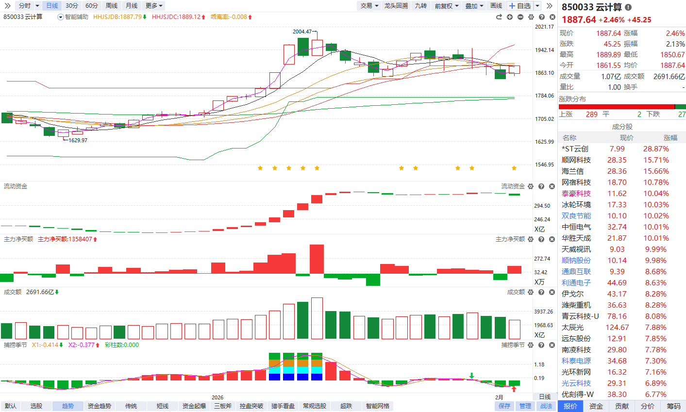 消息面上,东吴证券研报称,海外大厂谷歌和亚马逊已经开始上调云服务价格,为多年来首次。随着春节临近,国内AI应用需求逐步提升,国内云厂也会提价,带动AI云产业链投资机会。