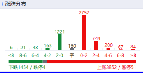 盘面上热点快速轮动,全市场超3800只个股上涨。从板块来看,化工板块集体走强,沧州大化、金牛化工、百川股份、百合花涨停。人形机器人概念表现活跃,五洲新春、联诚精密、天奇股份涨停。有色金属板块回暖,湖南黄金、翔鹭钨业涨停。光通信概念震荡回升,杭电股份6天5板。中药概念开盘活跃,特一药业涨停。下跌方面,大消费板块集体下挫,白酒、旅游酒店方向跌幅居前,皇台酒业跌停,大连圣亚触及跌停。