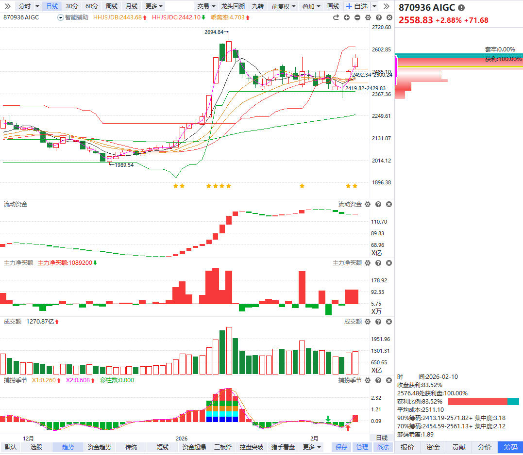 根据软件信号,板块近期流动资金开始翻红,捕捞季节回档金叉站上辅助线,板块指数突破近期横盘平台,如果后续量能持续温和放大,有望形成新一轮震荡上行趋势,可以积极关注捕捞季节日线金叉初期的首次60分钟回档或板块指数趋势首阴的分歧低吸博弈。