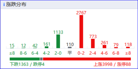 盘面上,全市场近4000只个股上涨,受涨价催化影响,稀土、磷化工、航运、油气等涨价题材股表现强势。从板块来看,锂矿概念快速拉升,大中矿业涨停。磷化工板块延续强势,澄星股份、六国化工、和邦生物2连板。稀土永磁概念表现活跃,北方稀土、包钢股份涨停。油气股反复走强,洲际油气2连板。下跌方面,影视院线概念再度下挫,横店影视2连跌停。