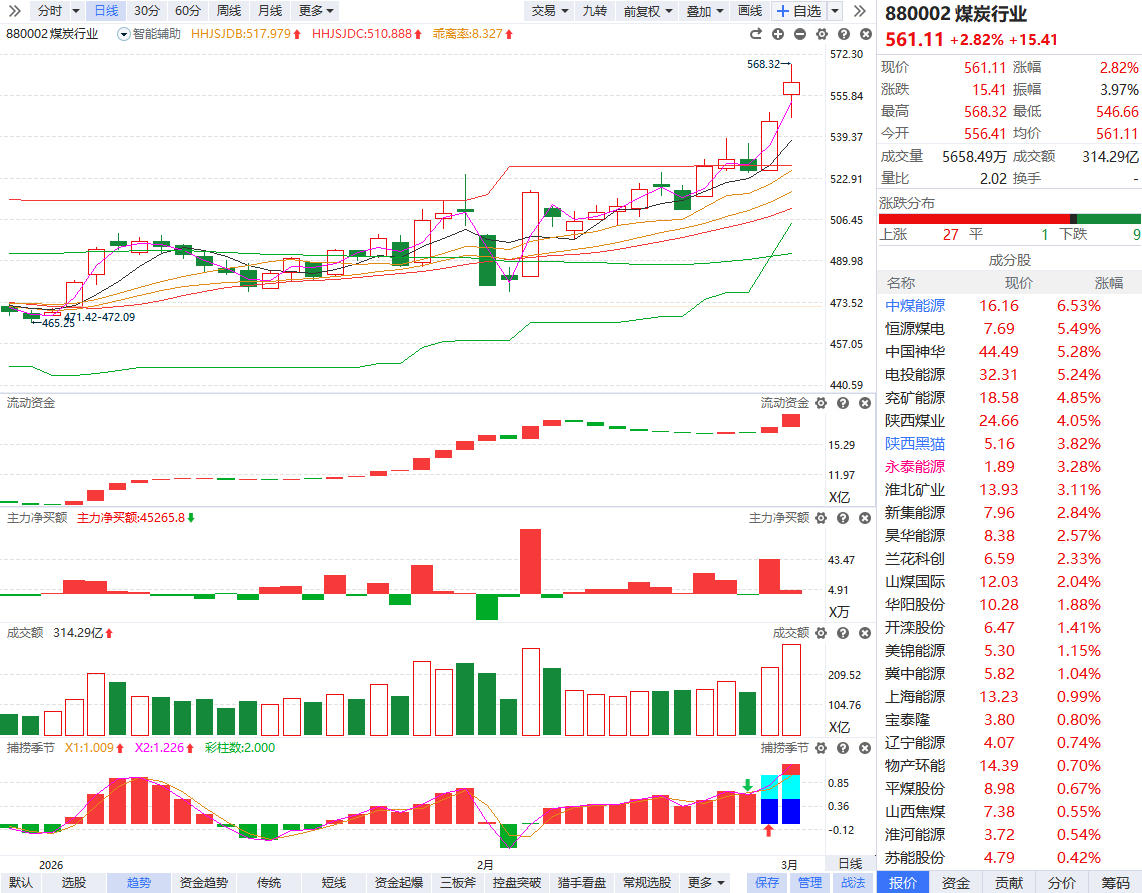 消息面上,中信证券认为,中东地缘冲突升级,若油价上涨,或有效推涨煤价;同时,甲醇等化工品贸易物流若受到影响,国内煤化工耗煤需求也有望增加,对煤价形成利好。目前叠加印尼煤炭减量带来的出口扰动,国内煤价预期有望持续向好。