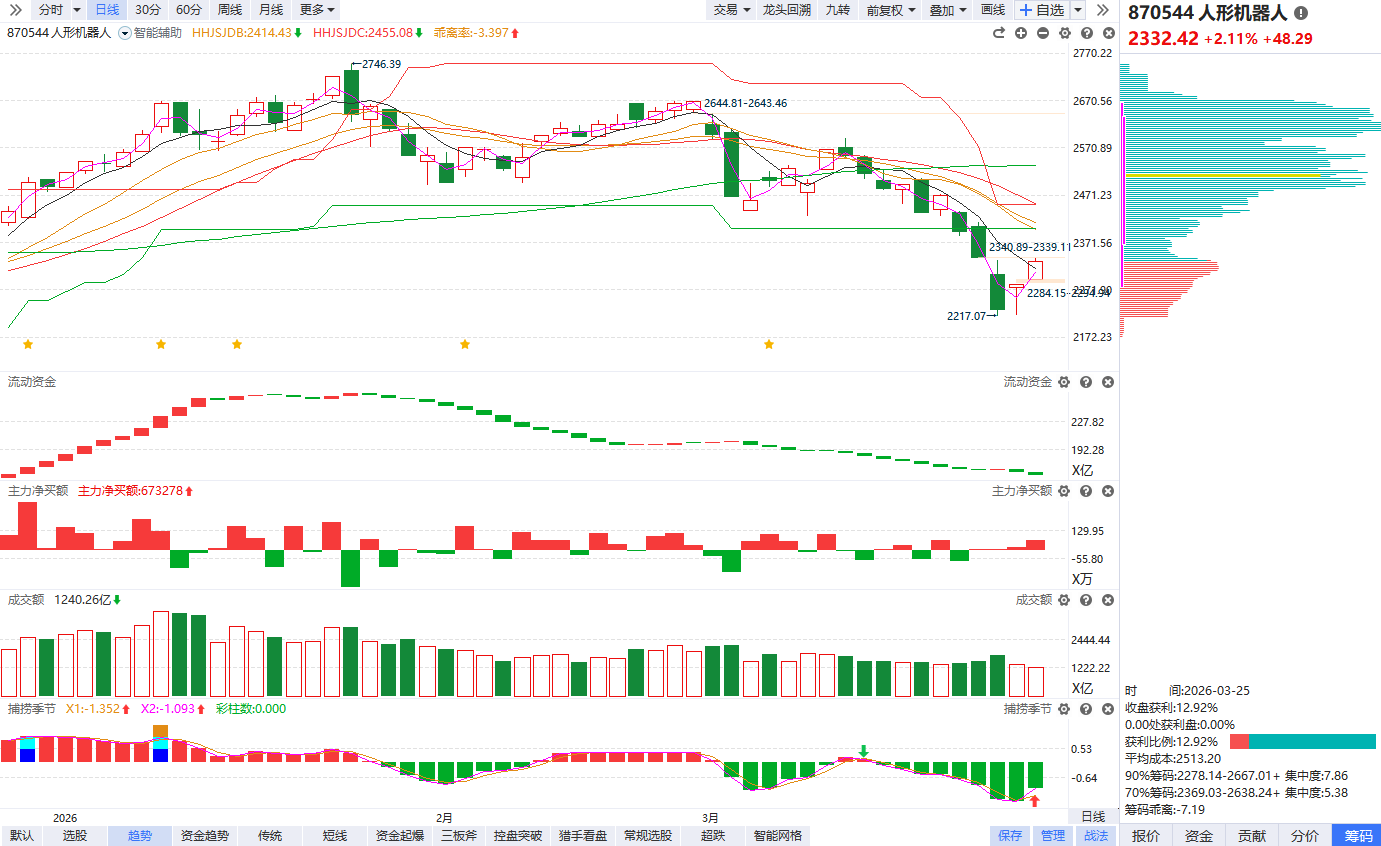 根据软件信号,板块近期流动资金小幅翻绿,跌破辅助线捕捞季节金叉反弹,暂时只看作超跌后的短线反抽,后续如能流动资金连续翻红站上辅助线,才能确认趋势拐点,后续首次缩量回档具备短线博弈性价比。