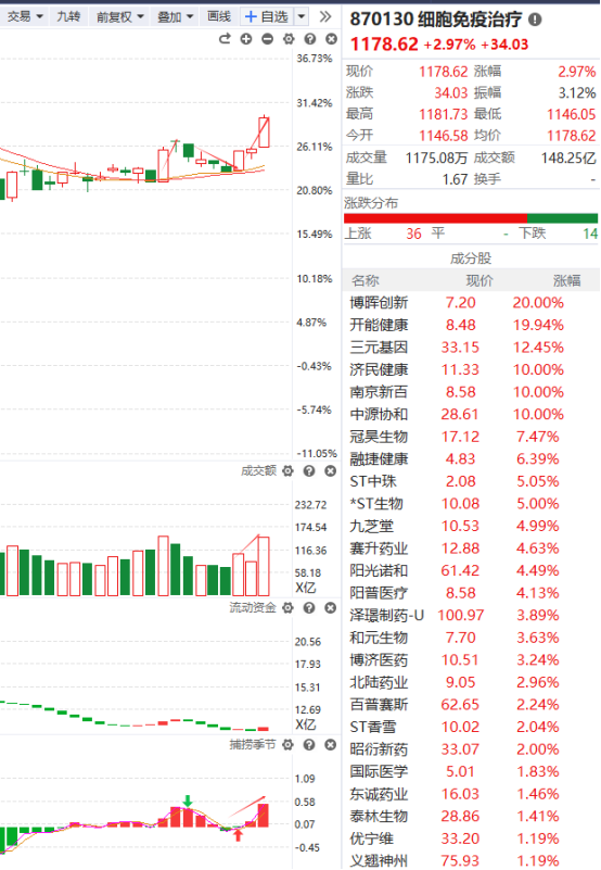细胞治疗概念异动拉升,开能健康等多股涨停