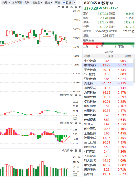 AI教育尾盘的异动拉升让它离突破辅助线的压制更进了一步,不过这种异动只是局部的并没有产生很大的推动作用,连最基本的让板块都没办法做到,不过捕捞季节已经收出了金叉且正处于弱转强的状态,而且AI教育一直以来没有走出特别强势的上涨行情,对于资金而言是一个比较新奇的领域,只是目前它还没有得到资金的认可,感兴趣的可以等它站上智能辅助线之后轻仓布局。