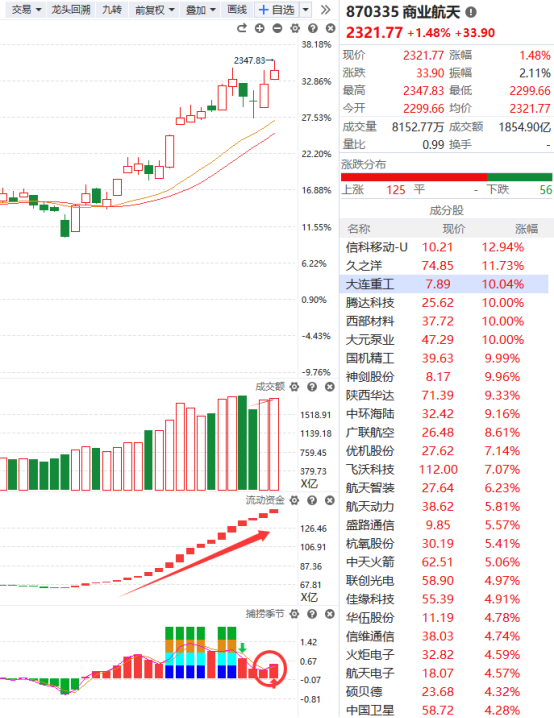 商业航天成为市场上的“香饽饽”不停地有资金参与以及有政策的支持,现在的它如日中天,涨势非常强,持有相关个股的继续拿着就行了,可千万不要盲目地加大仓位,一旦它过了炒作的风口,走势将会瞬间土崩瓦解,追高被套将很难解套。
