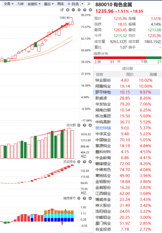 有色板块持续走高,罗平锌电、锌业股份双双涨停