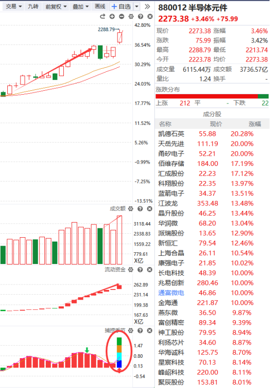 储存芯片的走势非常不错,前期经历较大幅度的上涨后短暂的窄幅震荡了一下并创出历史新高,目前它的走势没有什么问题,持有该方向个股的继续拿着就行了,随着商业航天的退潮,它很有可能走出类似的行情,但是有一点需要记住,那就是切勿追高买入,真想参与可以等它调整时介入,后面肯定会给“上车”机会的。