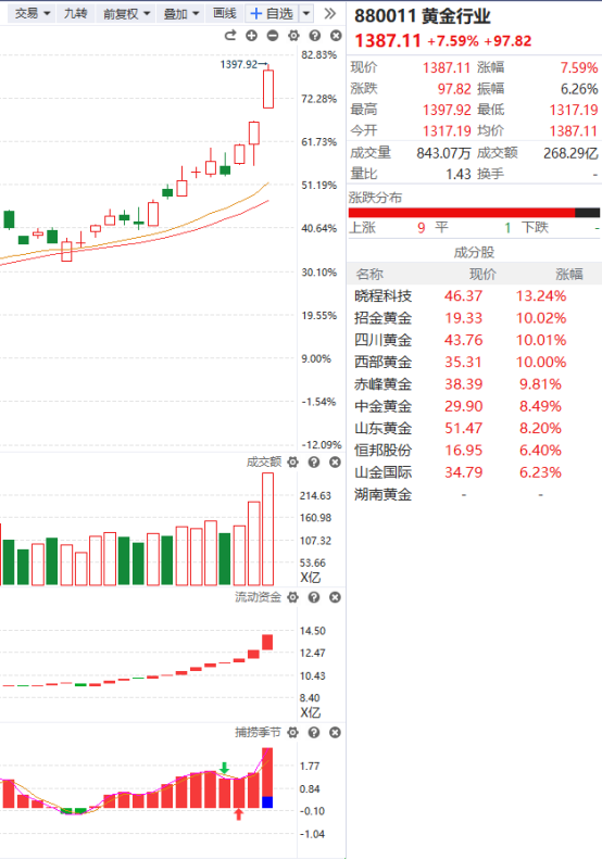 贵金属概念持续拉升,招金黄金涨停