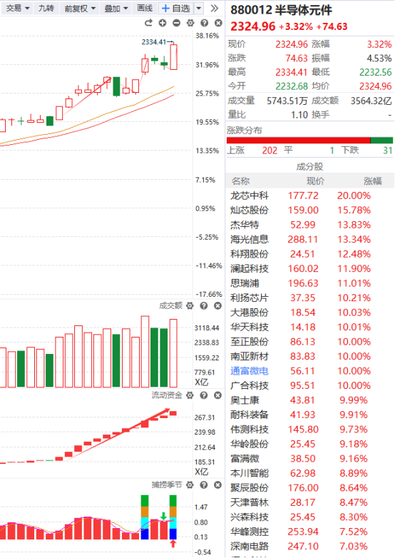 今日,午后存储芯片概念再度拉升,金太阳、兴森科技涨停,此前盈方微、至正股份、大港股份、通富微电涨停,兆易创新涨超6%,续创历史新高,赛腾股份、紫光国微、中电港等涨幅靠前。