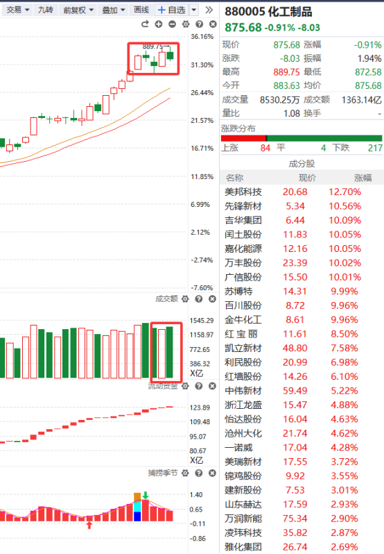 化工板块尾盘异动,红宝丽直线涨停