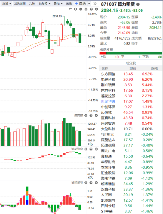 今日,临近午盘,算力租赁概念回暖,东方国信盘中涨超10%,群兴玩具一度冲高逼近涨停,莲花控股、拓维信息、大位科技、杰创智能跟涨。
