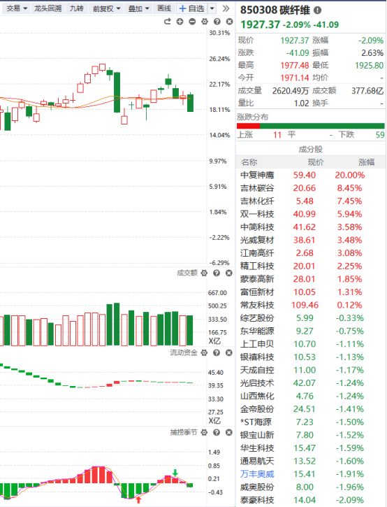 今日,碳纤维概念反复活跃,中复神鹰涨停续创历史新高,吉林化纤、吉林碳谷、中简科技、光威复材跟涨。