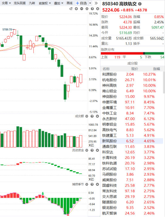 消息面上,央视财经报道,中国将在长江水下开高铁,沿江高铁总投资超5000亿元,带动上下游行业增加值增长近1.5万亿元。