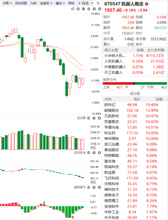 机器人概念有从底部止跌企稳的迹象,捕捞季节已经收出金叉且绿柱越来越短,K线目前所处的位置比较低,倒是不错的布局时机。